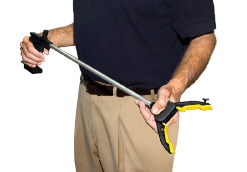 The Essential Deluxe Reacher features an ergonomically designed handle with pressure sensitive jaws. Full 360 rotation of jaws allow user to pick up objects without having to rotate arm and lose strength. Head has both a magnet and built in hanging device for storage. Unique trigger design allows for use with other hand.