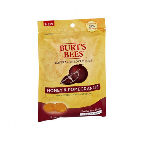 Burt's Bees Honey & Pomegranate Natural Throat Drops. Burt's Bees Honey and Pomegranate Natural Throat Drops are 100% natural and made with sweet, golden, & delicious honey. No artificial colors, flavors, sweeteners, or preservatives. Made with 100% natural menthol & eucalyptus oil.