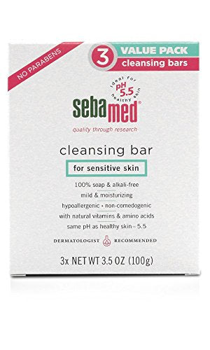Sebamed Sensitive Skin Cleansing Bar 3 Pack (10.5 ounce) - Hypoallergenic and Dermatologist Recommended. No Detergents that may Irritate Skin Conditions