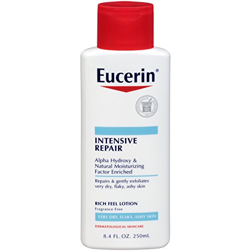 Dry skin therapy. Clinically proven effective for very dry, flaky skin. Non irritating and fragrance free. Your skin is so dry that it even becomes flaky and rough. the solution? Eucerin Plus Intensive Repair Lotion. to intensively moisturize and gently exfoliate. Your skin will look and feel healthier. Preferred by dermatologists. Patented formula combines a natural skin moisturizer with alpha hydroxy to intensively hydrate and smooth skin. Keeps skin moisturized for 24 hours. Non-greasy, fast absorbing. Fragrance free, won't clog pores.