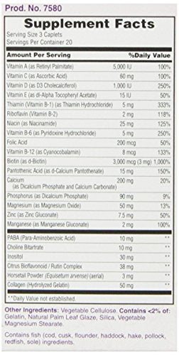 Natures Bounty Hair Skin & Nails. Our Hair, Skin and Nails caplets deliver a specialized combination of vitamins, minerals and other nutrients consistently found in healthy skin, hair and nails.* Featuring Vitamin C, Biotin and Zinc, this formula can truly help bring your internal radiance to the surface. 60 Caplets